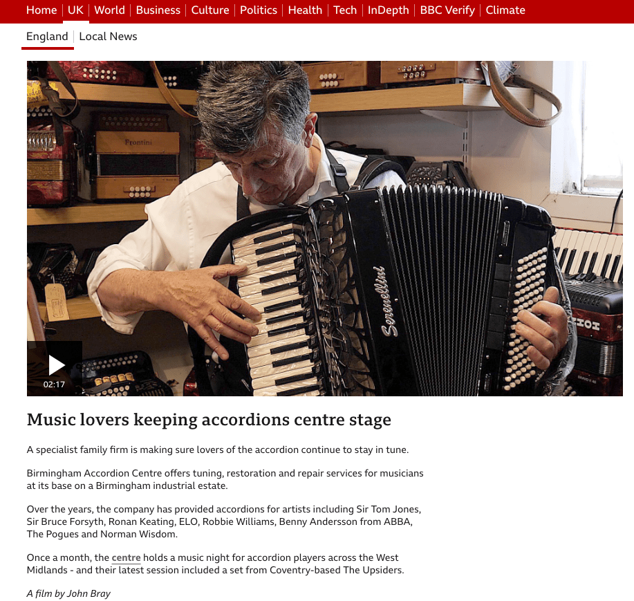 Birmingham Accordion Centre on the BBC!