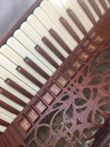 The Harmony model hand crafted in Italy with L shaped bass reeds give a rich deep sound on the bass with warm mellow tones perfect for folk and classical music.